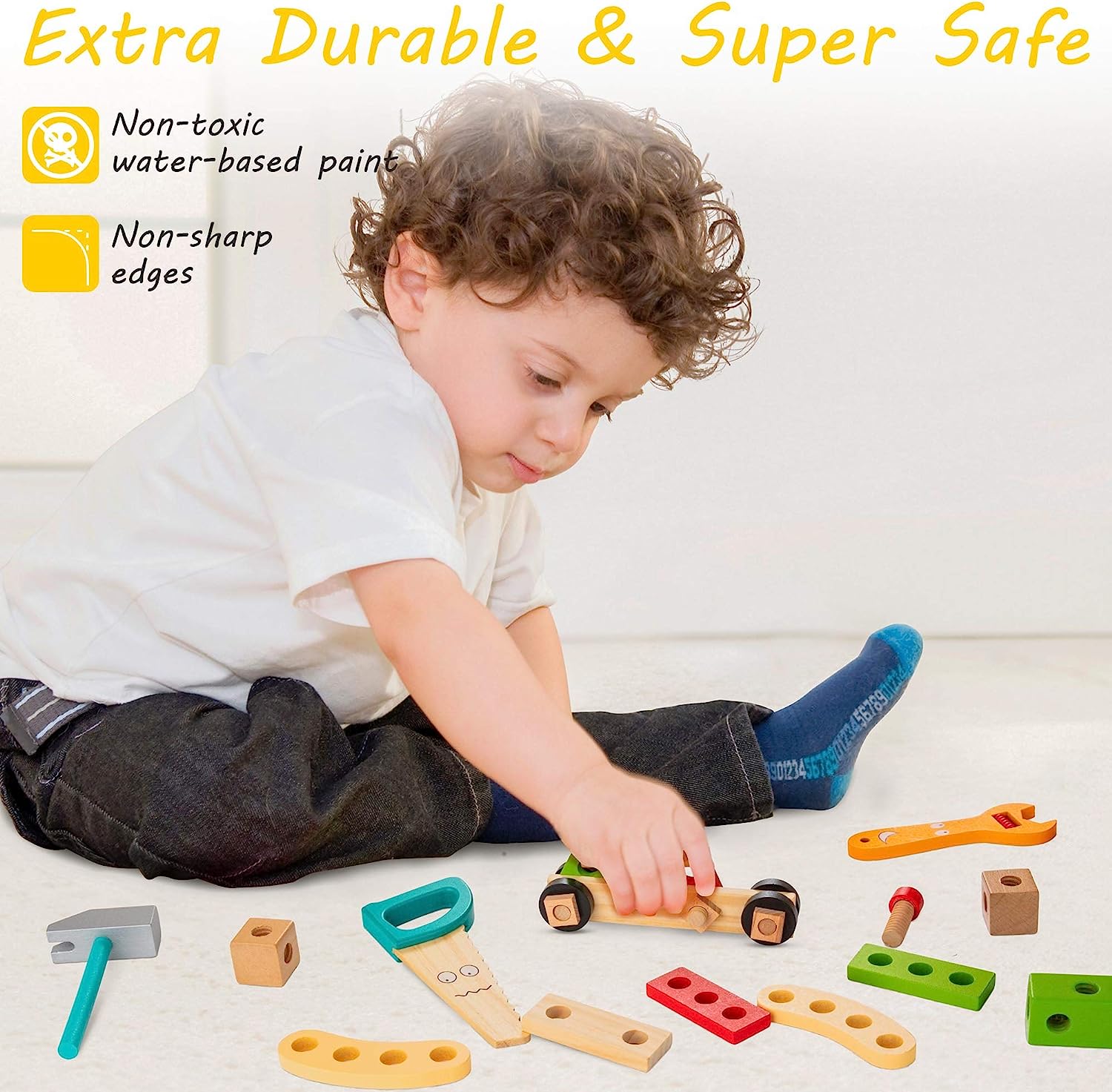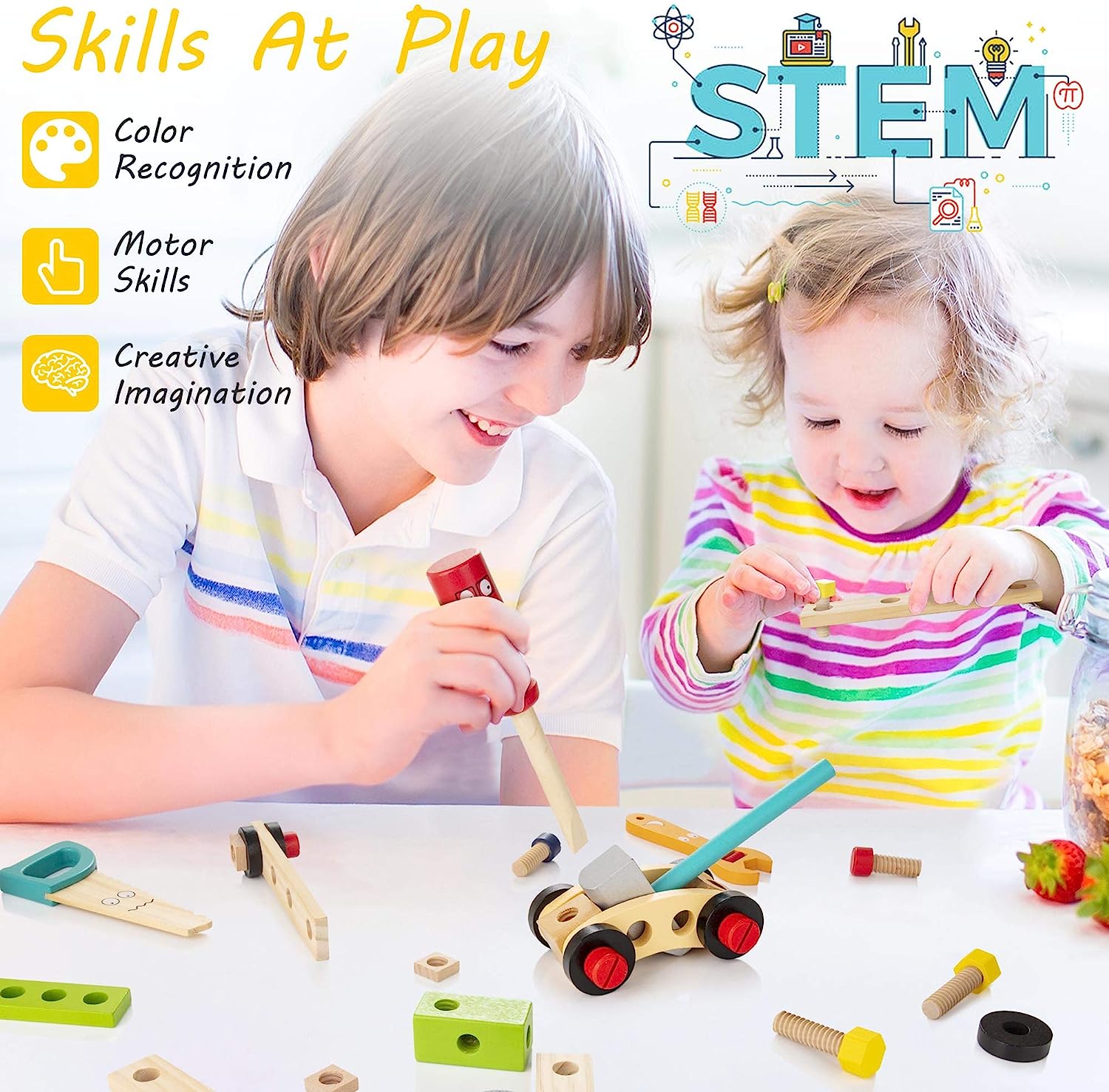 Tool Kit for Kids, 36 pcs Wooden Toddler Tools Set Includes Tool Box, Montessori Educational Stem Construction Toys